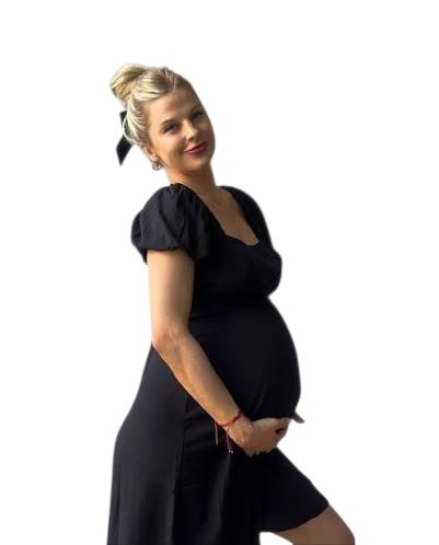 Vestido lino elastizado manga globo. Embarazo y lactancia